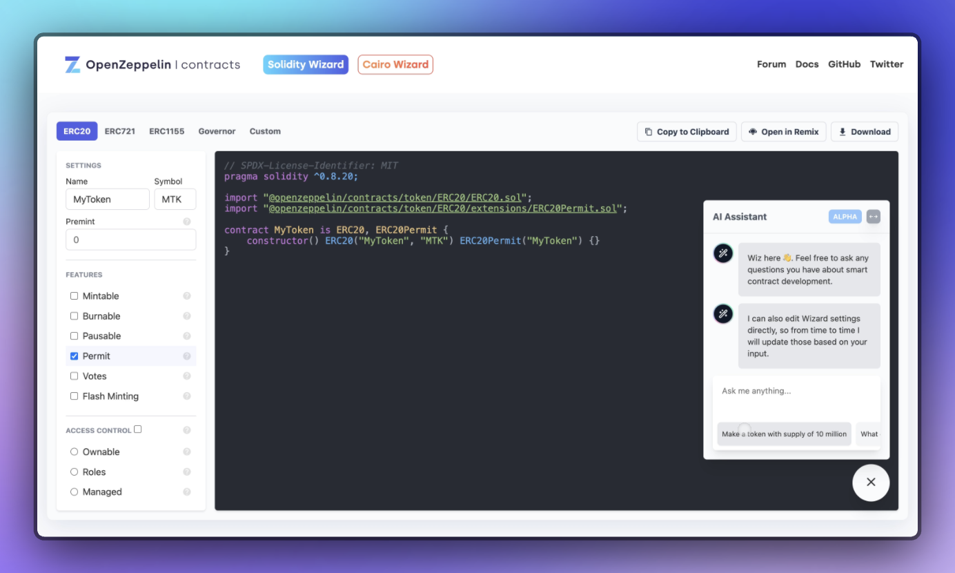 OpenZeppelin Contracts Wizard