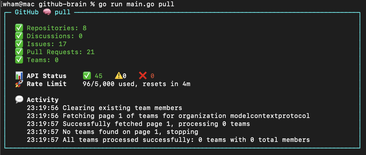 GitHub Brain complements (but does not replace) the official GitHub MCP server. It stores GitHub data in a local database for: