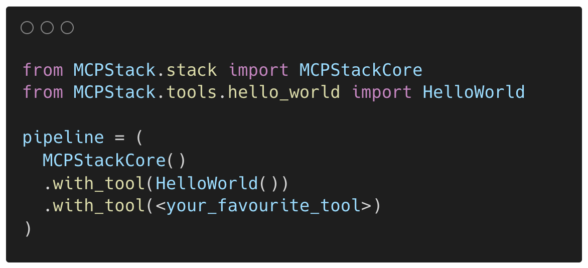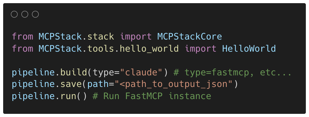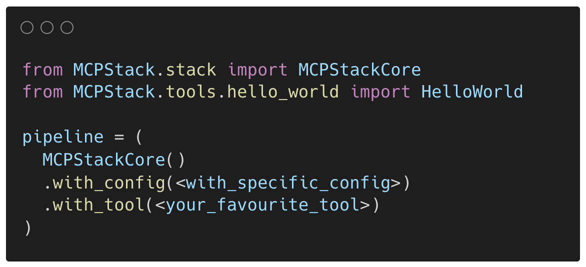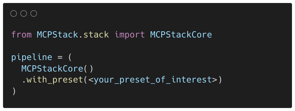 For those wanted to integrate MCPStack into their Python workflow, or simply prefer to play with programmatic pathways, MCPStack provides a Python API to build and run pipelines, very similarly; with chaining-based methods for an intuitive and smooth programmatic API exp.