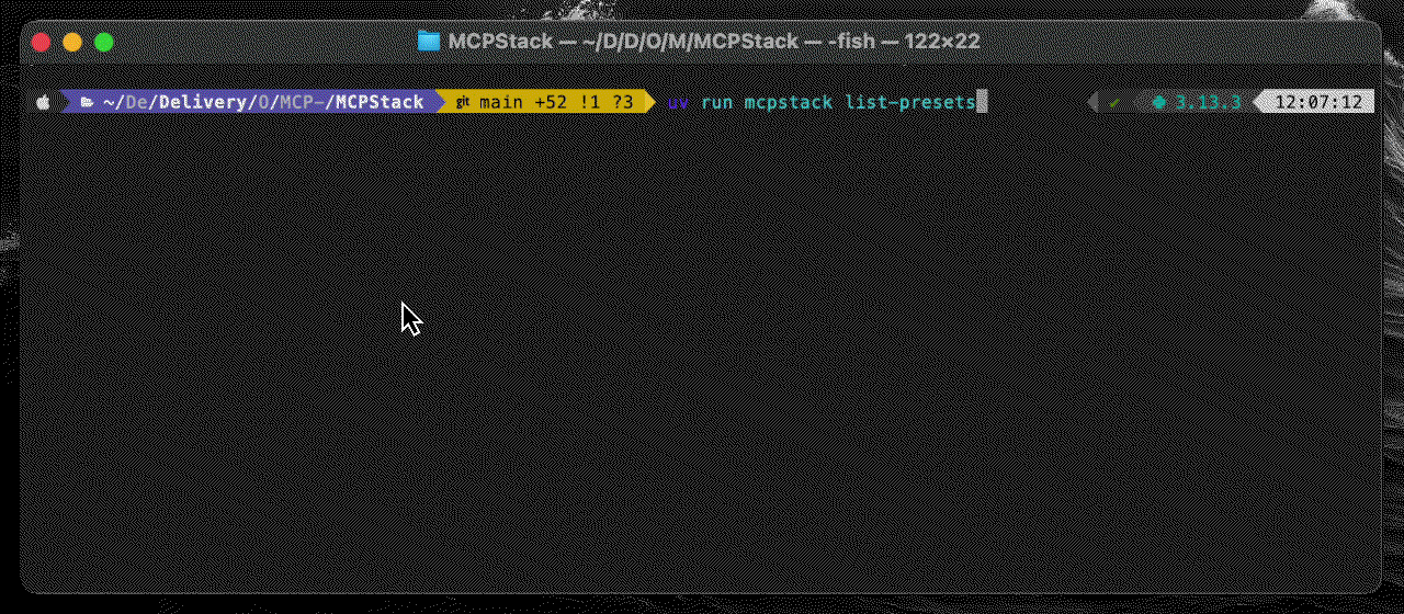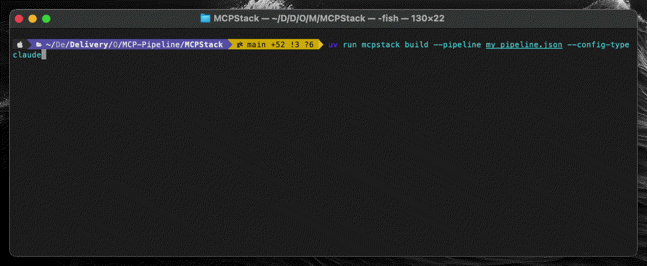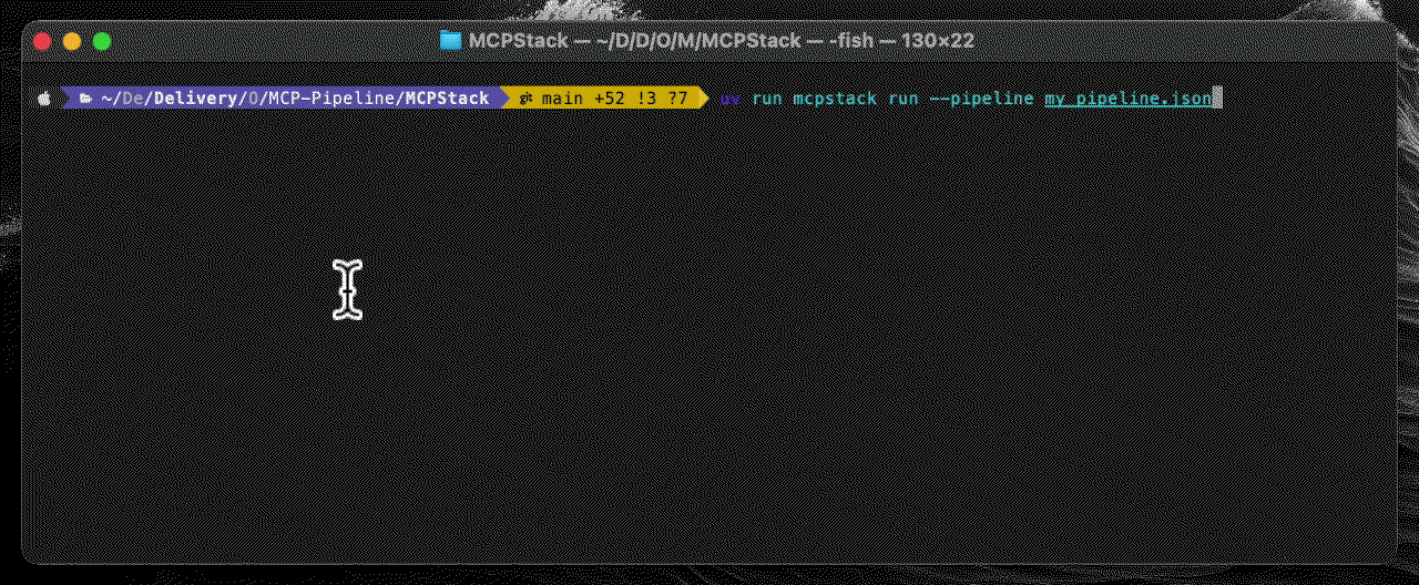You can manage and run your MCP pipelines directly from the CLI with the mcpstack command.