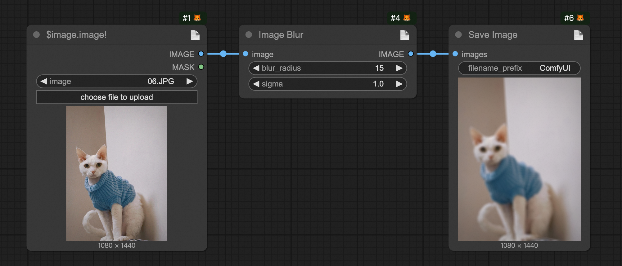 📝 Build a workflow in ComfyUI for image Gaussian blur (Get it here), then set the