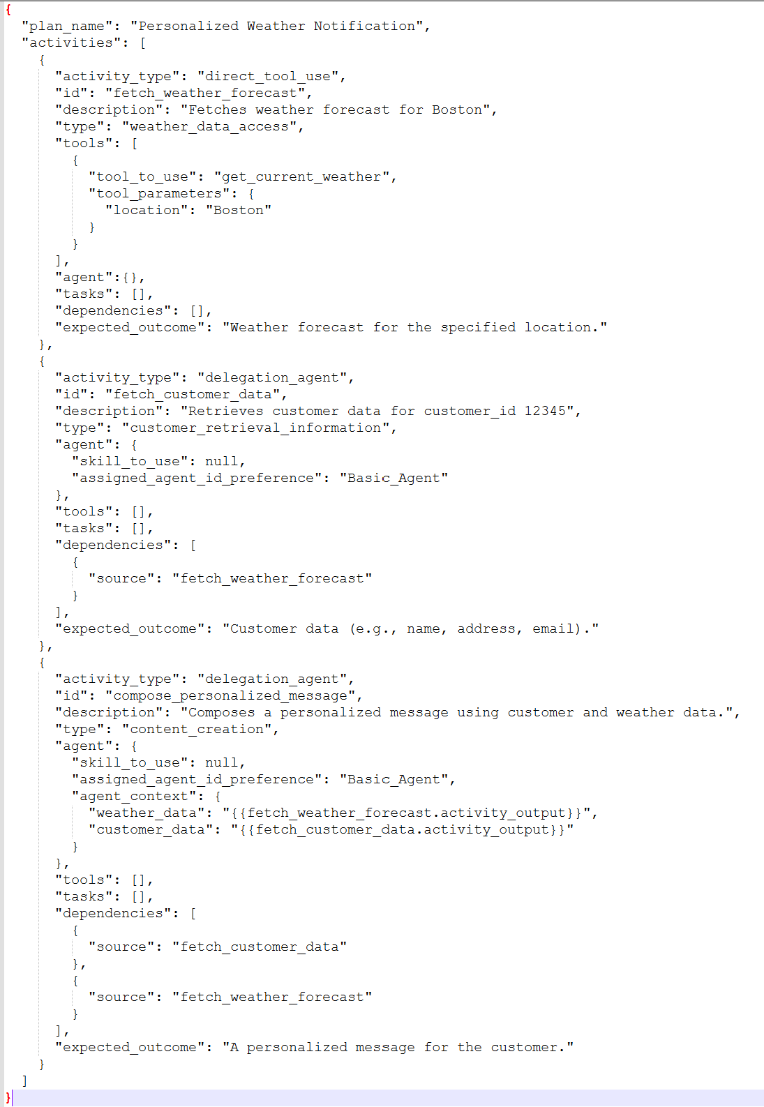 - Dynamically generate a new plan ("dynamic workflow") by evaluating the capabilities of available Domain Agents, Tools, or Tasks (or by instructing an Agent Factory to instantiate the necessary agents).