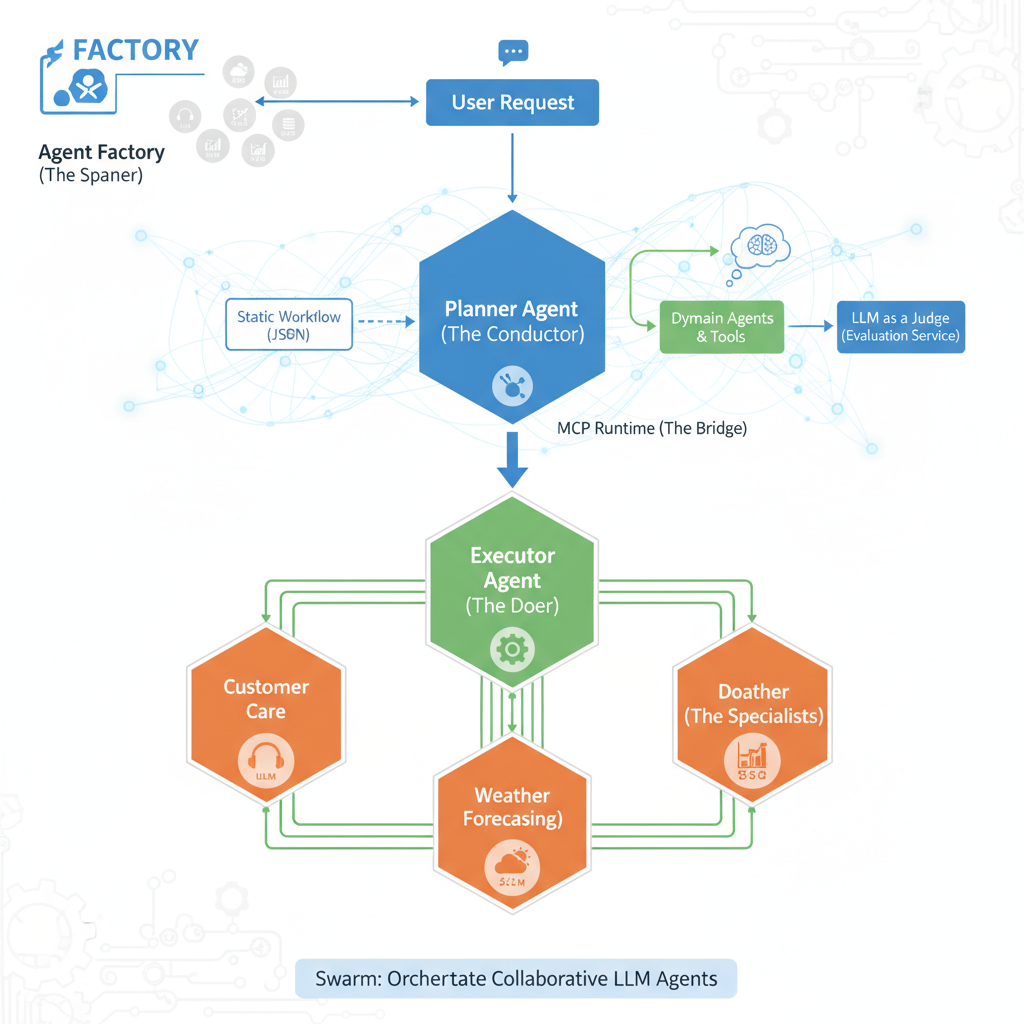 swarm_services) for continuous evaluation and potential workflow refinement. - 🏭 Agent Factory (The Spawner): This component allows for the dynamic, programmatic creation and management of agent instances at runtime, facilitating scalable and adaptive multi-agent systems.