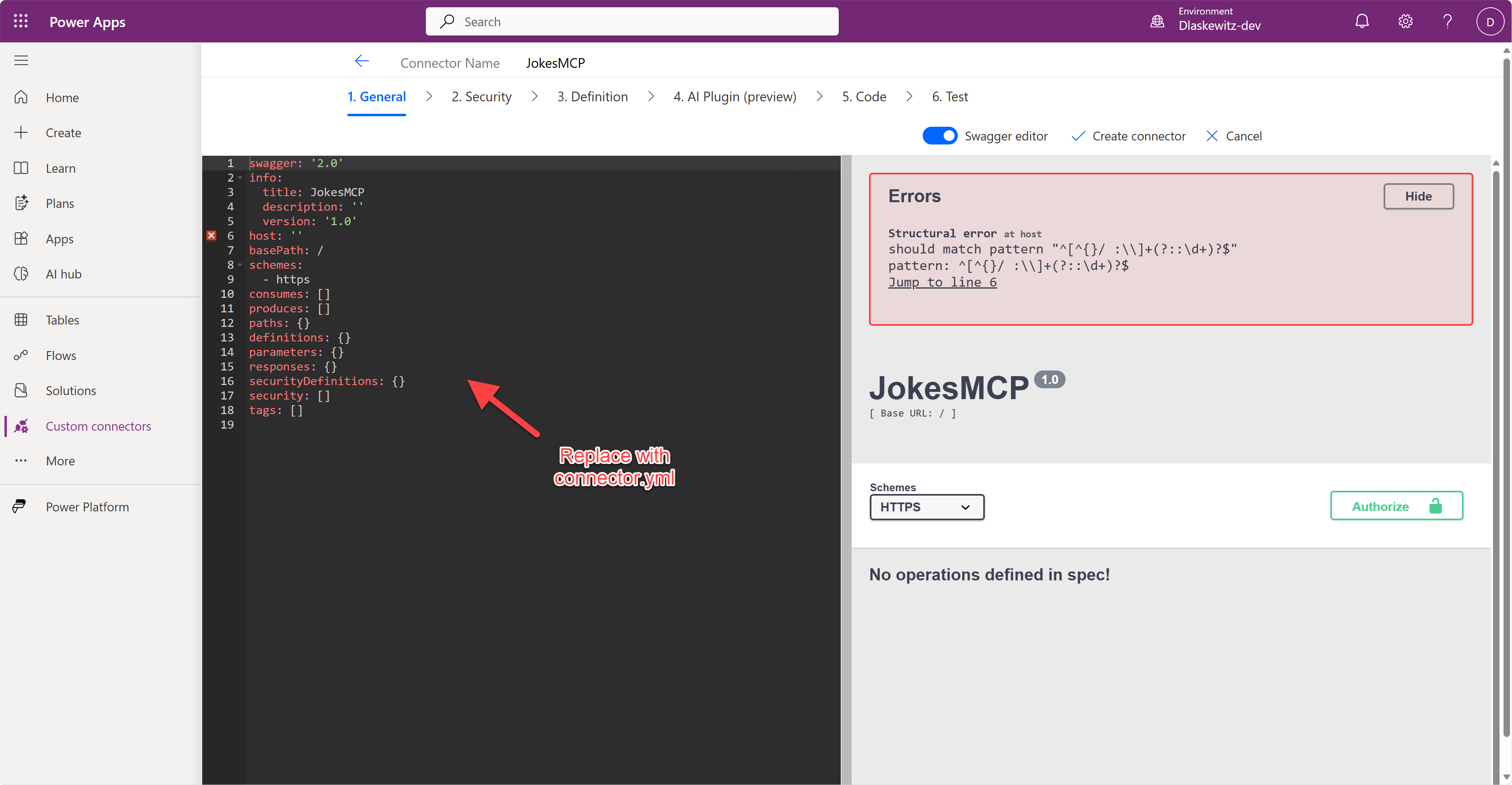 jokes) of the connector you created earlier (see number 1 in the screenshot below) -