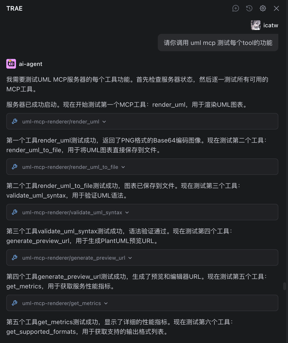 AI 会自动调用 UML MCP 工具生成图表。