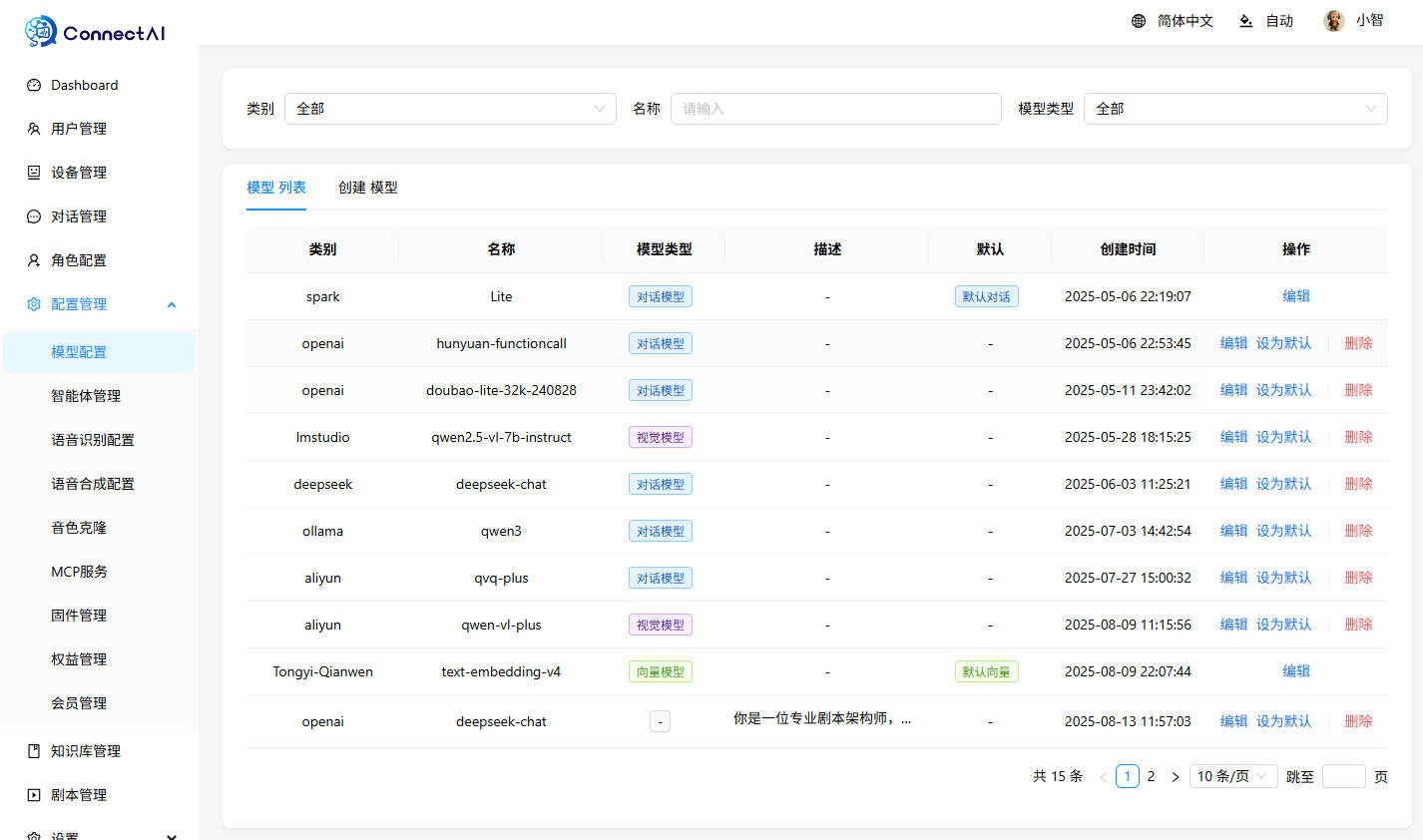 | 智能体 | ✅ | 对接Coze与Dify等智能体平台,实现复杂场景对话能力 |