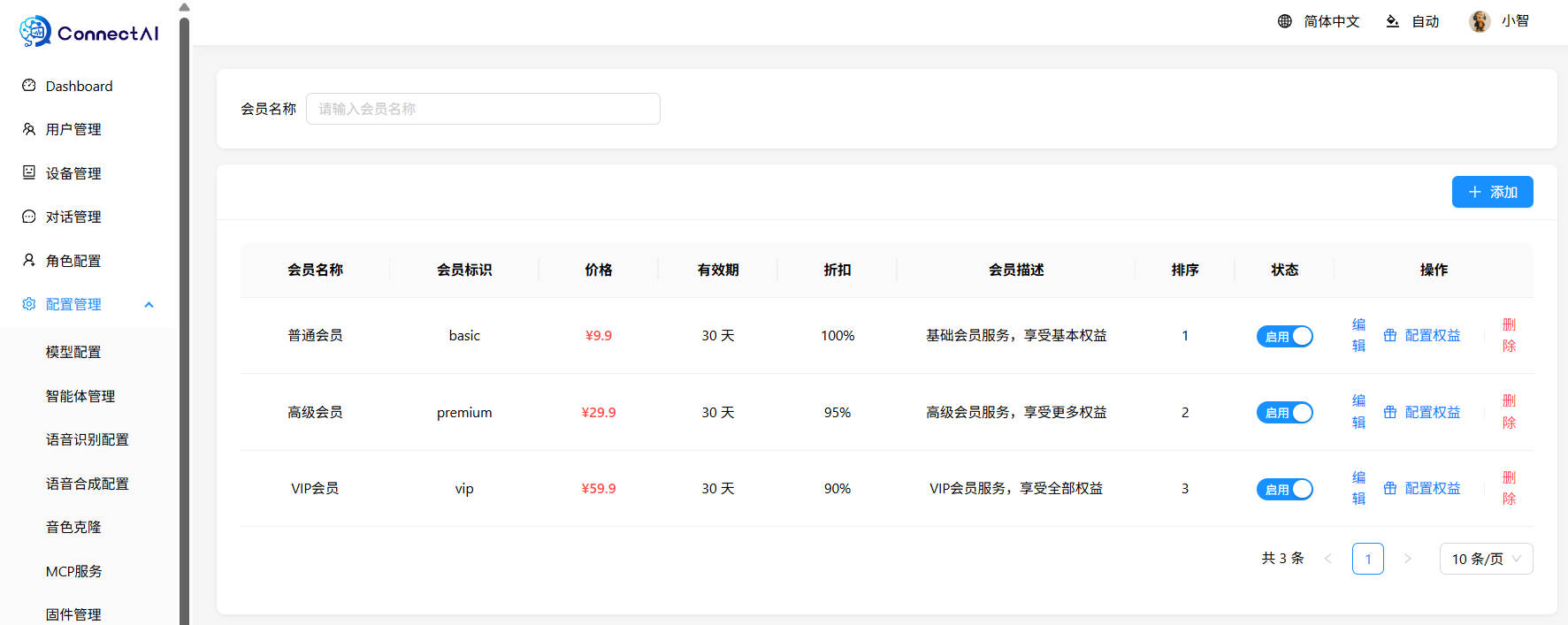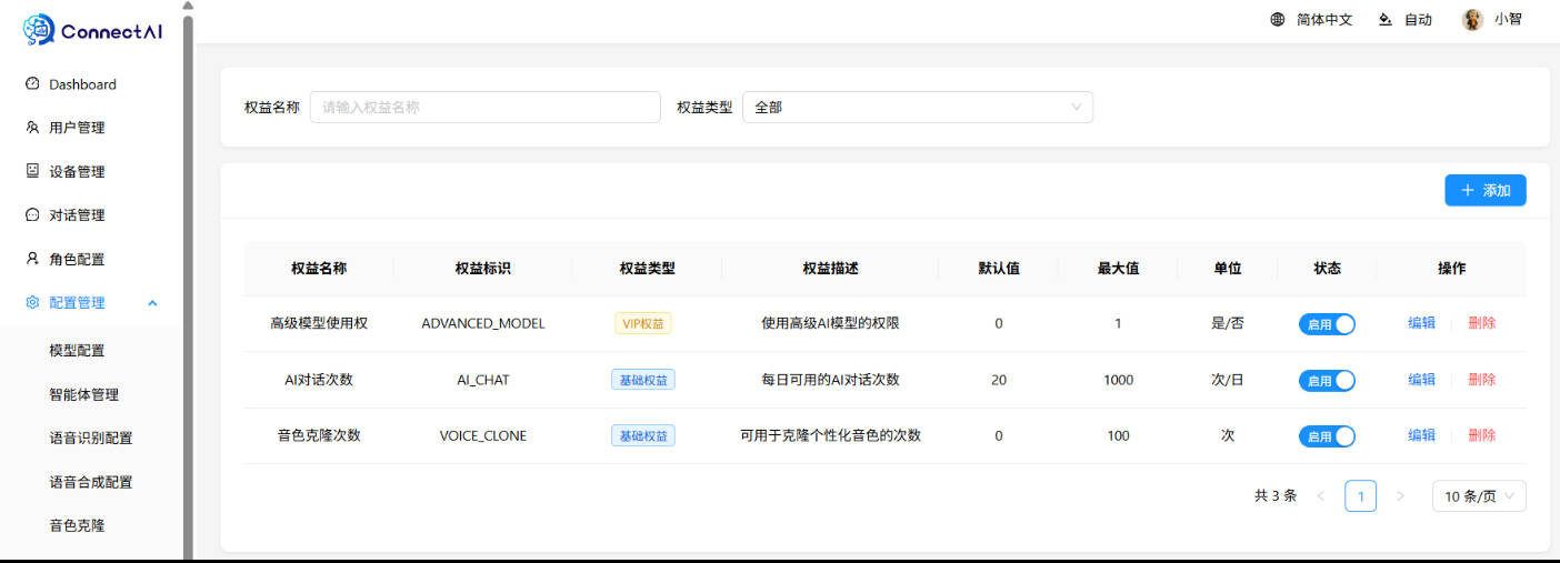 | 设备管理 | ✅ | 查看已接入的所有设备列表、设备状态实时监控、添加/编辑/删除设备信息 |